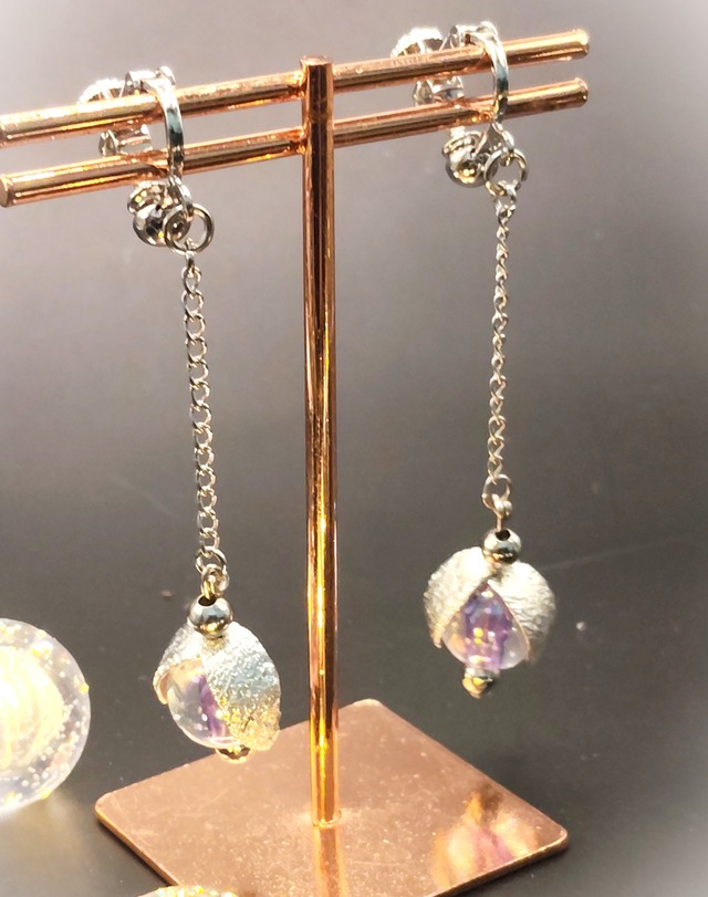 一つ一つ手作業で制作しております。 柄の配置等違いがあり お客様だけの「1っ」でございます♪ *ビーズ部分は おまかせになります。 錫部分:約2cm ピアス全長:約5cm 重さ(ピアス全体):4g ピアス部品:ステンレス