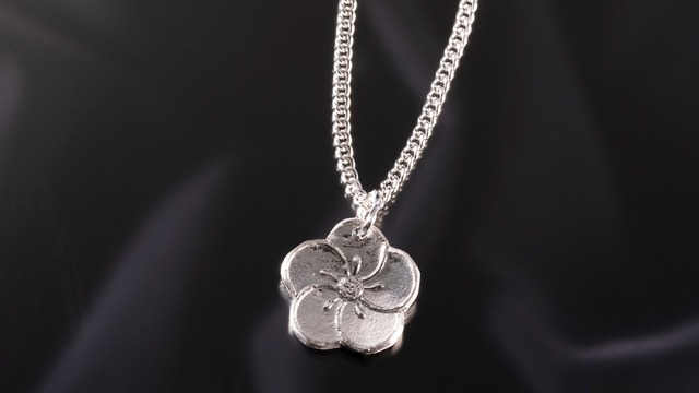 捻じ梅をモチーフにしたネックレスです。 梅は、古来から「和」の象徴とされ、その独特な美しさや力強さにより、品格や気品のシンボルとして多くの人々に愛されています。 同デザインのピアスもあります。 【サイズ】 錫パーツ部分:約2㎝ 重量:4g チェーンの長さ:40cm+アジャスター5㎝ 【素材】 トップ部分:錫 トップ以外:ステンレス